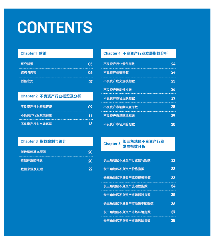 《復(fù)旦—浙商不良資產(chǎn)行業(yè)發(fā)展指數(shù)報(bào)告》由緒論、不良資產(chǎn)行業(yè)概覽及分析、指數(shù)編制與設(shè)計(jì)、全國(guó)不良資產(chǎn)行業(yè)發(fā)展指數(shù)分析、長(zhǎng)三角不良資產(chǎn)行業(yè)發(fā)展指數(shù)分析、珠三角不良資產(chǎn)行業(yè)發(fā)展指數(shù)分析、不良資產(chǎn)行業(yè)發(fā)展指數(shù)預(yù)測(cè)和結(jié)論、建議及展望組成。該報(bào)告的形成對(duì)于不良資產(chǎn)行業(yè)來說具有一定的里程碑意義。本報(bào)告在信息及數(shù)據(jù)獲取上尚有不足之處,在分析方法及闡述內(nèi)容上也還有不夠完善的地方,還希望各位讀者提出寶貴意見,以便于我們?cè)诮窈蟮难芯恐胁粩嗵嵘芯克?。我們也希望本?bào)告繼續(xù)延續(xù)下去,成為不良資產(chǎn)行業(yè)參與者的重要參考,成為不良資產(chǎn)行業(yè)方向及策略性指引。