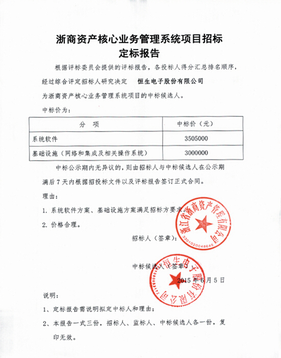 浙商資產(chǎn)核心業(yè)務(wù)管理系統(tǒng)采購中標公示