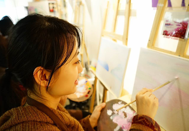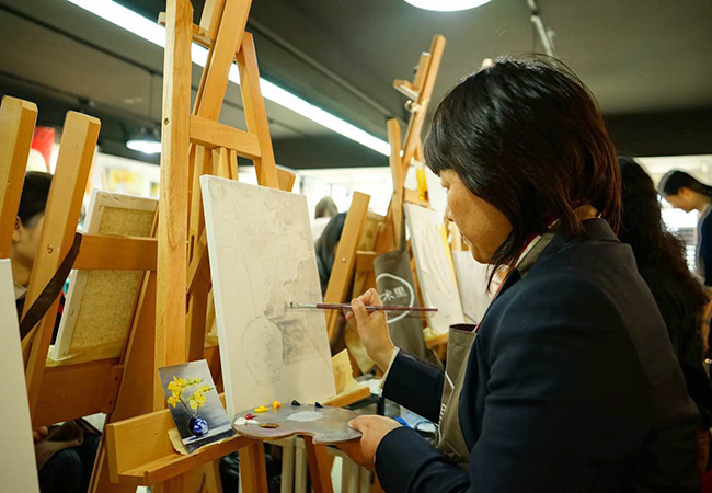 用圖畫(huà)裝飾生活,用畫(huà)筆記錄美好。盡管公司大部分女員工都并沒(méi)有太多的繪畫(huà)基礎(chǔ),在作畫(huà)的過(guò)程中,許多人都碰上了困難,或者調(diào)不出理想的顏色,或者拿捏不準(zhǔn)間架結(jié)構(gòu)。但通過(guò)畫(huà)室老師的指導(dǎo),以及同事之間的互相幫助,最終完成了一幅幅令人驚嘆的畫(huà)作。財(cái)務(wù)部周潔漪的星空?qǐng)D奇幻燦爛、運(yùn)營(yíng)部徐苒子的櫻花樹(shù)夢(mèng)幻美好、人力資源部總經(jīng)理錢(qián)煒的向日葵生機(jī)勃勃,每一個(gè)人都在自己的筆下創(chuàng)造了美好與奇跡。