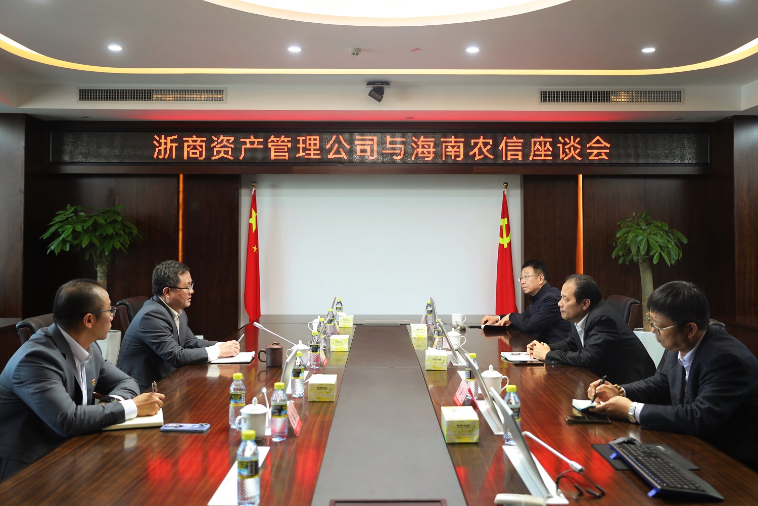 2月23日下午,孫建華一行與海南省農(nóng)村信用社聯(lián)合社黨委副書記、主任李曉剛等開展調(diào)研座談,積極探索業(yè)務(wù)合作方向。期間,孫建華介紹了浙商資產(chǎn)的發(fā)展改革歷程,李偉達介紹了輕資產(chǎn)業(yè)務(wù)、特資科技和服務(wù)商體系建設(shè)情況。雙方表示,將進一步加強合作交流,積極參與和融入海南自貿(mào)港建設(shè)等國家重大發(fā)展戰(zhàn)略,把握好《中國銀保監(jiān)會辦公廳關(guān)于引導(dǎo)金融資產(chǎn)管理公司聚焦主業(yè)積極參與中小金融機構(gòu)改革化險的指導(dǎo)意見》帶來的政策機遇,搶抓“時間窗口”,在不良資產(chǎn)收購處置、中小金融機構(gòu)改革化險等方面謀求短期和中長期合作機會,為防化區(qū)域風險添勁助力。