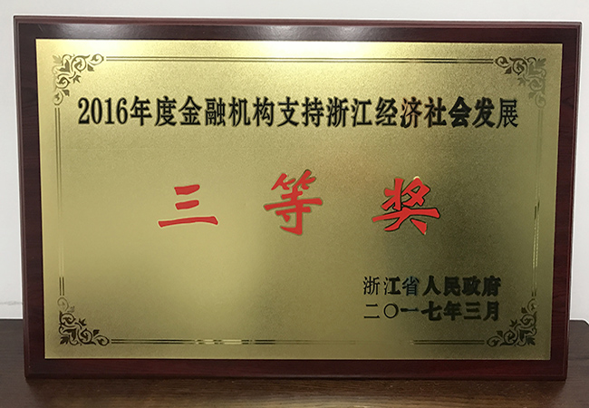 2017年3月,浙商資產(chǎn)榮獲浙江省人民政府頒發(fā)的2016年度金融機(jī)構(gòu)支持浙江經(jīng)濟(jì)社會(huì)發(fā)展三等獎(jiǎng)。