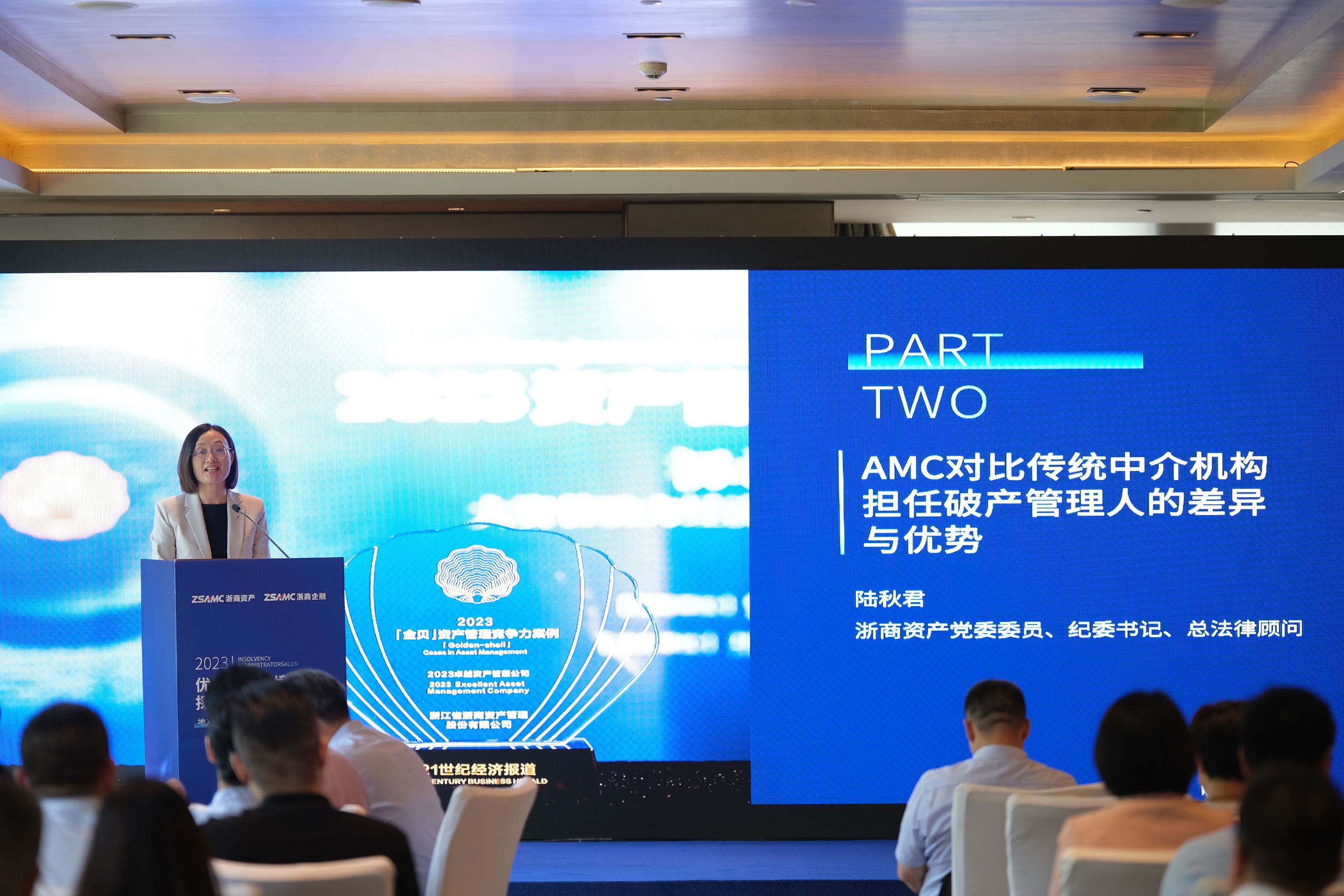 浙商資產(chǎn)黨委委員、紀(jì)委書(shū)記、總法律顧問(wèn)陸秋君從專(zhuān)業(yè)經(jīng)驗(yàn)、治理結(jié)構(gòu)、人才配置、資源整合、資金融通等方面著重分析了AMC對(duì)比傳統(tǒng)中介機(jī)構(gòu)在擔(dān)任破產(chǎn)管理人方面的比較優(yōu)勢(shì),并指出AMC應(yīng)準(zhǔn)確把握當(dāng)前經(jīng)濟(jì)社會(huì)發(fā)展新形勢(shì),加強(qiáng)破產(chǎn)管理業(yè)務(wù)的雙向加速賦能,依照前瞻化、市場(chǎng)化、法治化原則,因地制宜,采取債權(quán)轉(zhuǎn)讓、托管、債務(wù)重組、資產(chǎn)重組、共益?zhèn)?、破產(chǎn)重整、市場(chǎng)化債轉(zhuǎn)股、財(cái)務(wù)顧問(wèn)等多種方式化解風(fēng)險(xiǎn),充分發(fā)揮地方AMC功能作用。