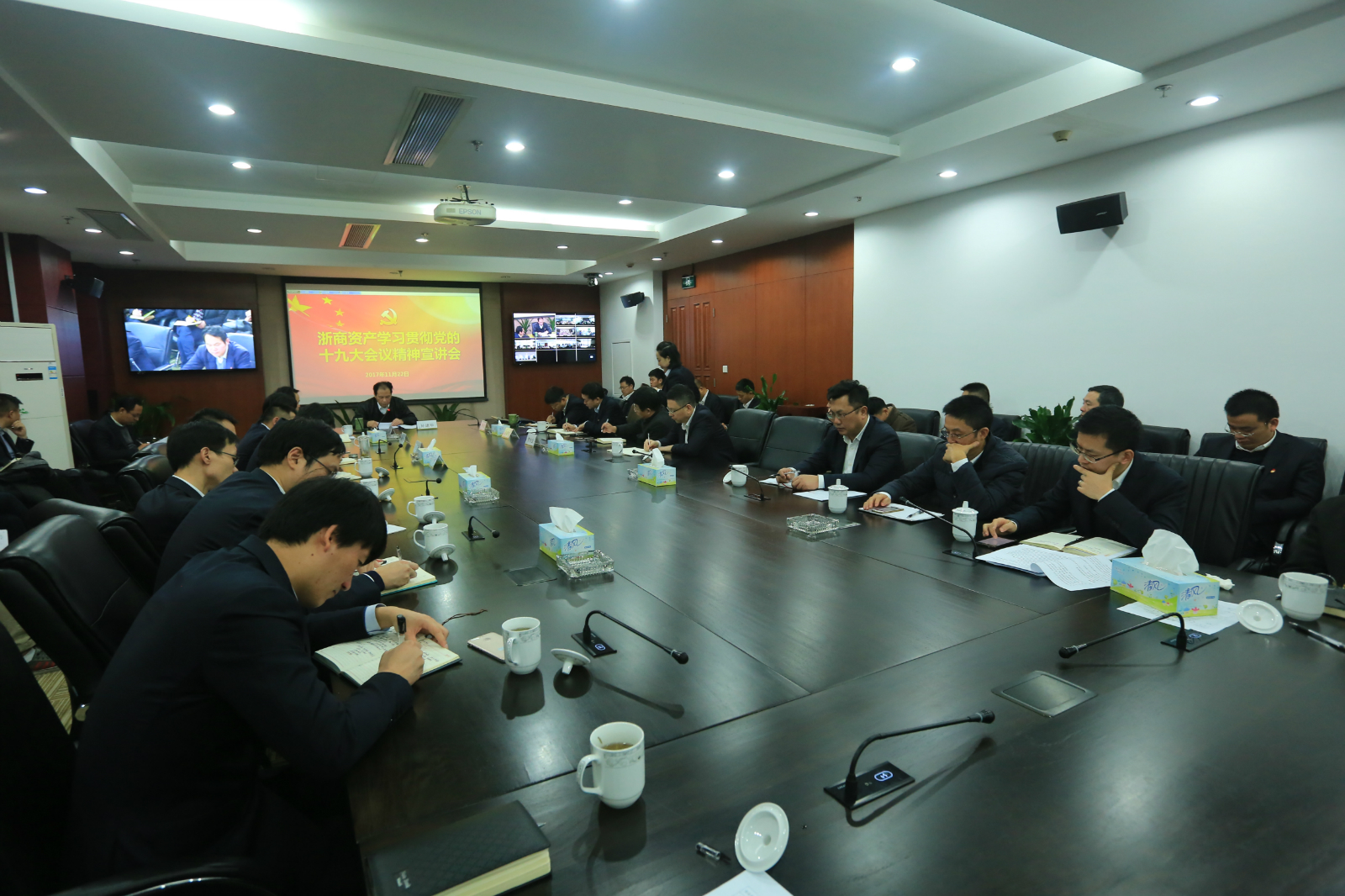 黨委副書記鄭順民表示,公司黨委將組織黨員認(rèn)真學(xué)習(xí)貫徹十九大精神,按照孫建華書記宣講內(nèi)容和提出來的要求,切實(shí)抓好落實(shí)。他強(qiáng)調(diào)了四點(diǎn)意見:一是真學(xué)深學(xué),堅(jiān)持自學(xué)與集中學(xué)習(xí)相結(jié)合、專題討論和交流分享相結(jié)合、學(xué)習(xí)培訓(xùn)和開展宣講相結(jié)合、領(lǐng)導(dǎo)帶頭學(xué)和黨員普遍學(xué)相結(jié)合,做到全面掌握、學(xué)深悟透;二是學(xué)做結(jié)合,把學(xué)習(xí)貫徹十九大精神與謀劃公司發(fā)展方向、制定公司發(fā)展措施結(jié)合起來,抓重點(diǎn)、補(bǔ)短板、強(qiáng)弱項(xiàng),全力做好“國內(nèi)一流”“加速發(fā)展”兩篇文章,努力為全省經(jīng)濟(jì)社會(huì)發(fā)展貢獻(xiàn)浙商資產(chǎn)的智慧;三是從嚴(yán)治黨,圍繞抓基本、打基礎(chǔ),完善黨建工作制度,夯實(shí)基層基礎(chǔ),以更加科學(xué)、更加嚴(yán)密、更加有效的舉措,加強(qiáng)黨的領(lǐng)導(dǎo);四是擴(kuò)大宣傳,用好網(wǎng)上網(wǎng)下兩個(gè)平臺,發(fā)動(dòng)黨支部書記帶頭講黨課,謀劃用好公司宣傳欄、微信公眾號、公司網(wǎng)站等宣傳陣地,最大限度凝聚共識。