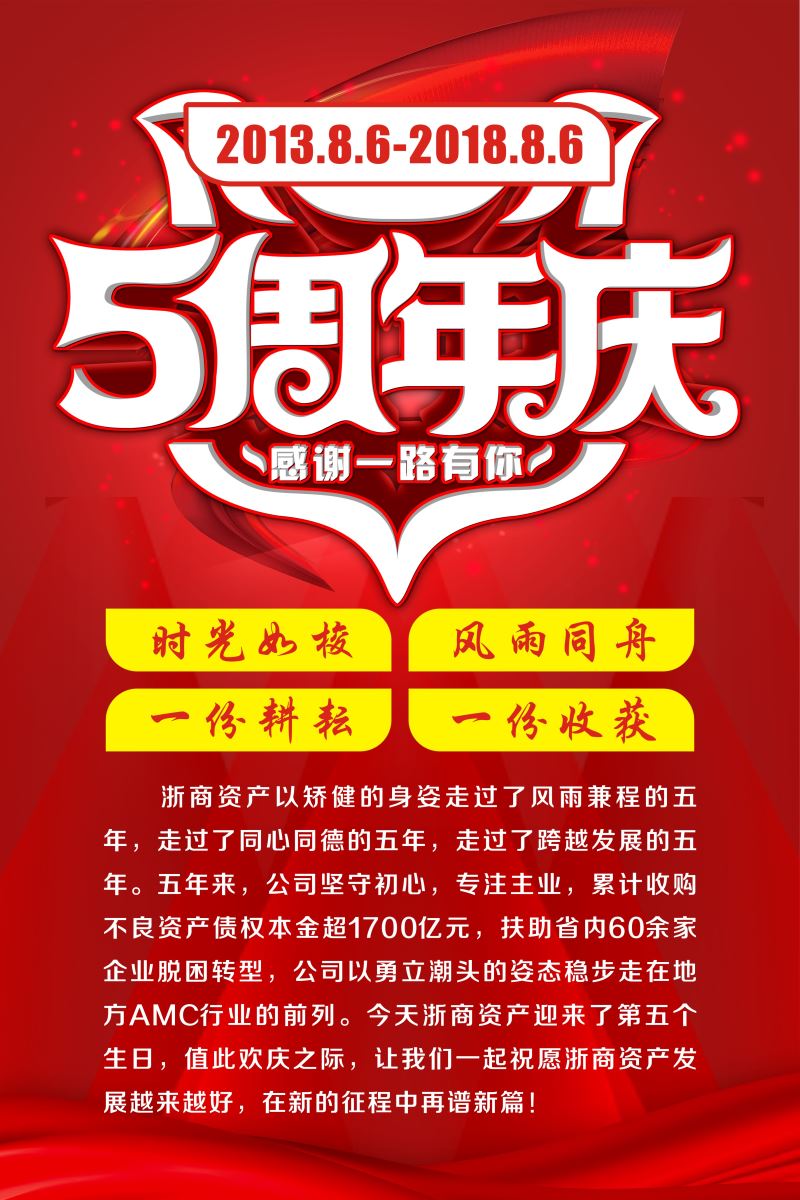 慶祝浙商資產(chǎn)成立五周年 浙商資產(chǎn)感恩一路有你