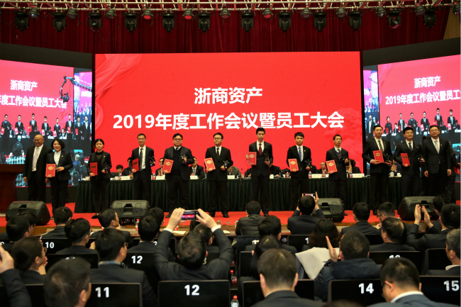 1月25日,浙商資產(chǎn)召開2019年度工作會議。省地方金融監(jiān)督管理局金融保障處吳登寬處長,浙商資產(chǎn)董事、監(jiān)事、股東代表,全體領導班子成員、業(yè)務副總經(jīng)理,浙商資產(chǎn)本級及下屬成員公司全體員工(含億利達公司的部分代表)等共計近500人參加了會議,會議由副董事長徐曉東主持。
