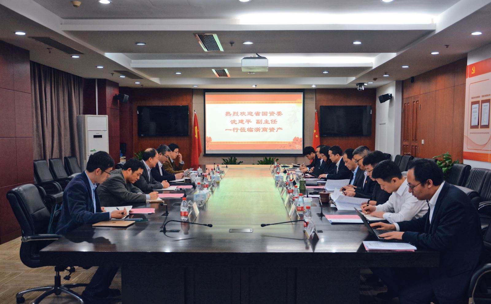 2019年3月21日下午,省國(guó)資委副主任沈建平一行蒞臨浙商資產(chǎn)調(diào)研指導(dǎo)“雙百行動(dòng)”改革工作,省國(guó)資委考核處處長(zhǎng)姚宏峰、企改處處長(zhǎng)童海桑、副處長(zhǎng)王其鋒等陪同調(diào)研座談。