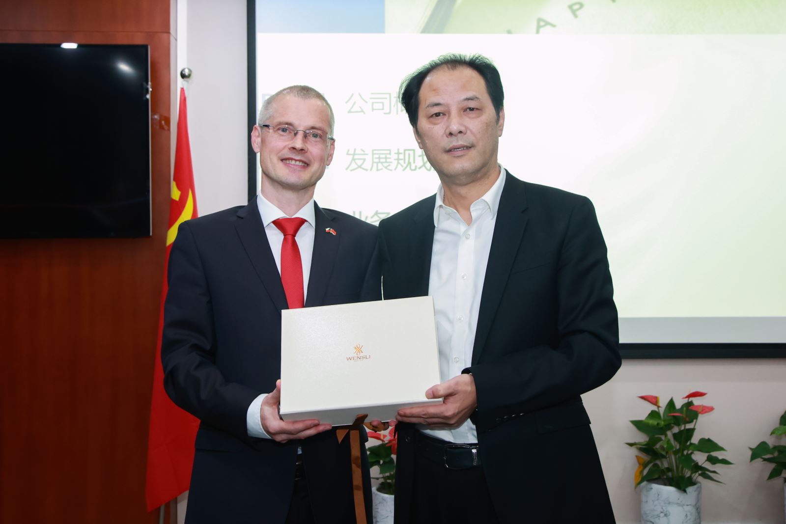 孫建華董事長(zhǎng)首先對(duì)佟福德大使一行的來訪表示熱烈歡迎,并介紹了國(guó)貿(mào)集團(tuán)和浙商資產(chǎn)的發(fā)展情況。他指出,國(guó)貿(mào)集團(tuán)與捷克企業(yè)的貿(mào)易合作由來已久,未來進(jìn)一步合作的空間廣泛。省政府對(duì)于浙商資產(chǎn)與捷信消金的合作高度重視,浙商資產(chǎn)將根據(jù)監(jiān)管要求,在依法、合規(guī)、專業(yè)且符合商業(yè)邏輯的原則下,全力以赴推進(jìn)與捷信消金的合作。
