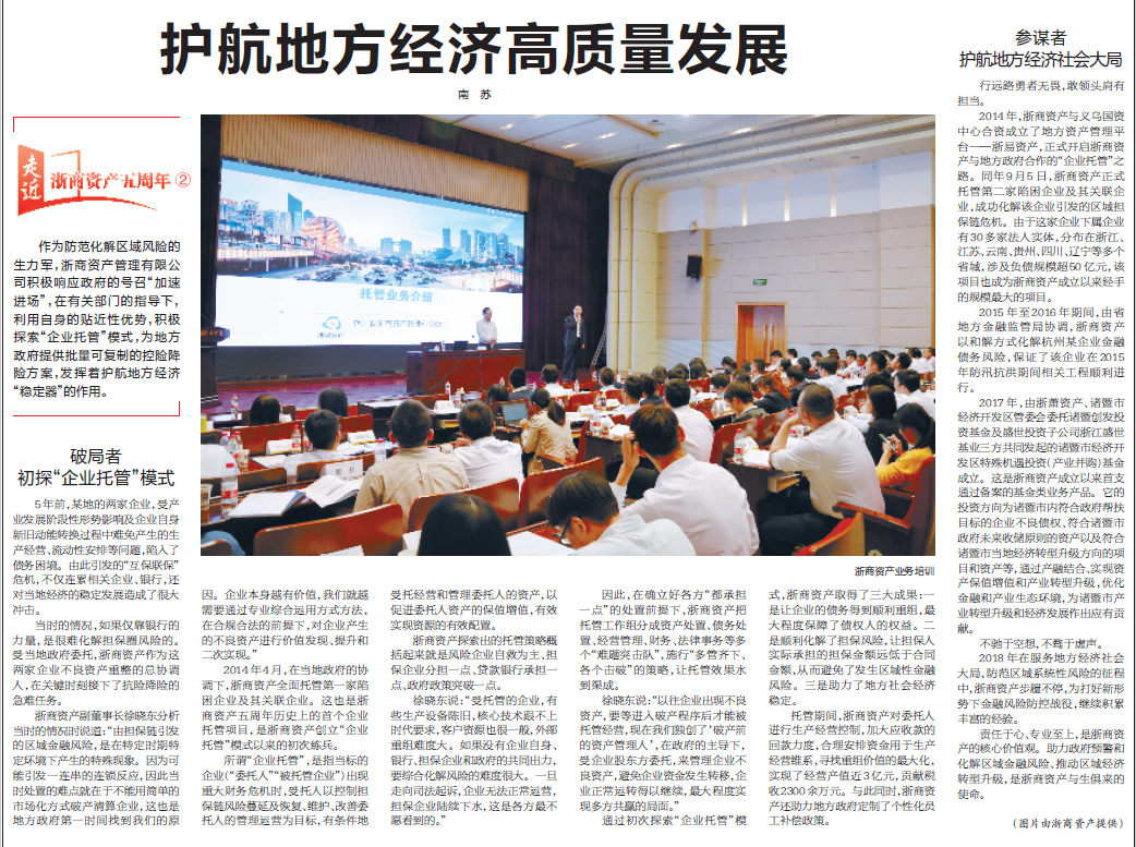 【浙江日報】走近浙商資產(chǎn)五周年系列二:護航地方經(jīng)濟高質(zhì)量發(fā)展